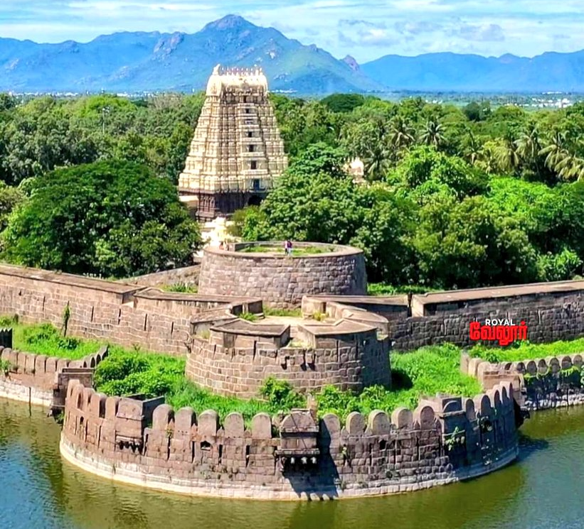 விஜயநகரப் பேரரசின் சதாசிவ ராயரின் கீழ் இருந்த தலைவர்களான சின்ன பொம்மி ரெட்டி மற்றும் திம்மு ரெட்டி நாயக்கர் ஆகியோரால் வேலூர் கோட்டை கி.பி. 1566 ஆம் ஆண்டில் கட்டப்பட்டது. “வேலூரில் உள்ள கோட்டையைப் போல பூமியின் முகத்தில் அத்தகைய கோட்டை இல்லை” என்று குறிப்பிடப்பட்டுள்ளது. இது ஒரு காலத்தில் 10,00 முதலைகள் கூட்டமாக இந்த அசைக்க முடியாத கோட்டைக்குள் ஊடுருவும் ஒவ்வொருவரையும் பிடிக்கக் காத்திருந்த ஆழமான ஈரமான பள்ளத்தை (அகழி) கொண்டிருந்தது. இது ஒழுங்கற்ற முறையில் நீட்டிய கோட்டைகளைக் கொண்ட பெரிய இரட்டைச் சுவர்களைக் கொண்டுள்ளது. அங்கு இரண்டு வண்டிகளை ஓட்ட முடியும்.